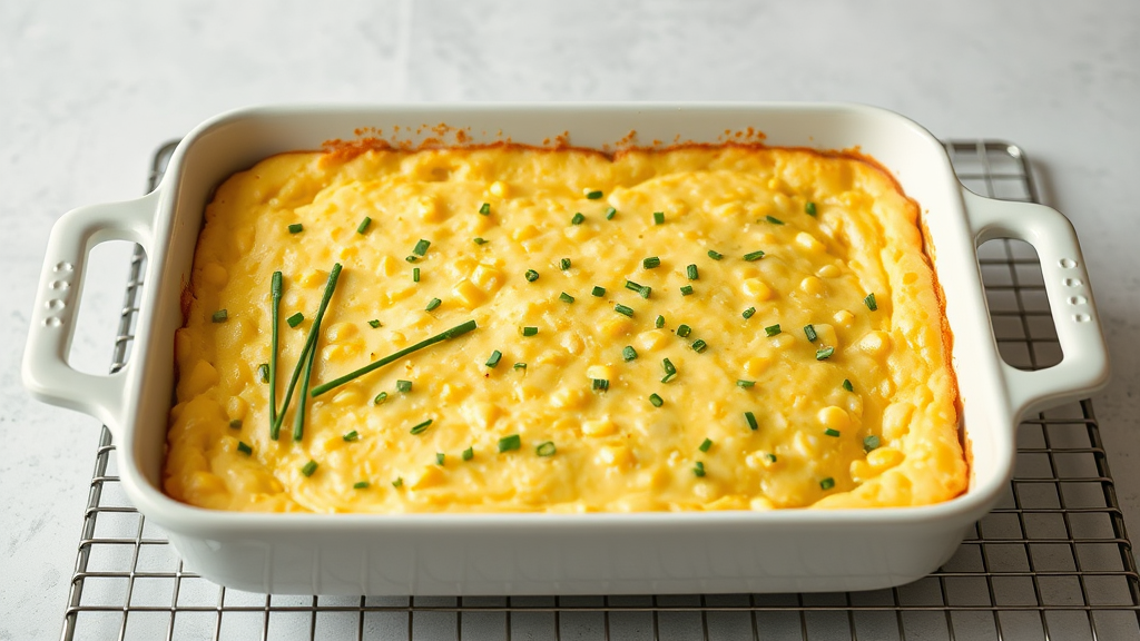 A creamy and flavorful corn pudding recipe with chives, a perfect Thanksgiving side dish.